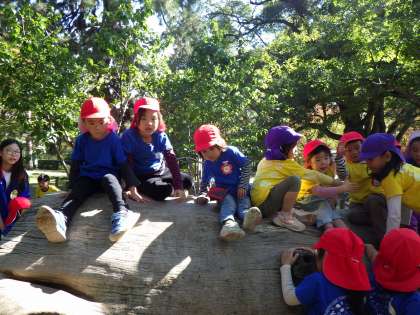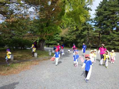 今日は、京都御苑に乾隆幼稚園の子どもたちと一緒に秋見つけにいってきました。