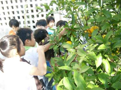 幼稚園のみかんが今年は豊作。