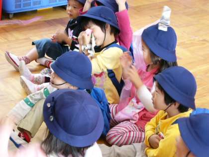 お帰りの用意です。手遊び歌でしめくくるよ。