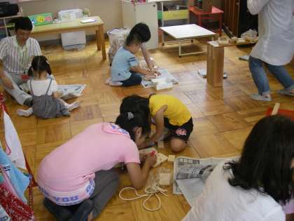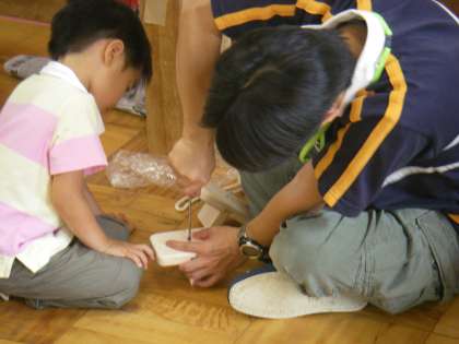 とても上手だったので,子どもには大うけでした。何とそれ以上に保護者にもっと大うけでした。そのあと一本歯下駄を作りました。