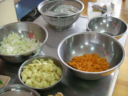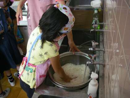 今日は朝から,お米を洗い,野菜を包丁で切ります。