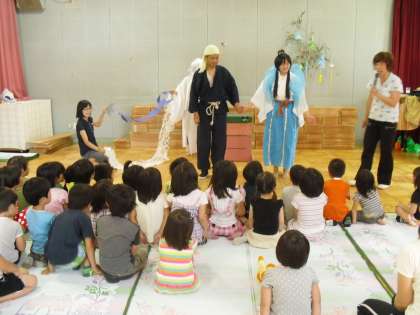 会えることを楽しみに遊戯室に行くと,素敵な衣装の織姫さまが現れました。