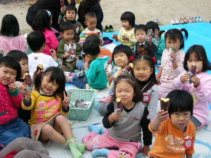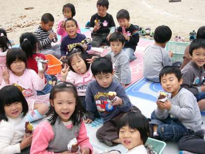 「お母さん,ありがとう。いただきます。」「「あつ,あつい」「うわー,おいしい」「中がほくほく」「おいしいね」「食べた。もっとおかわり」みんなで一緒に食べるとますます美味しいね。
