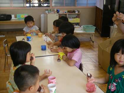 そして,今年も和菓子の「鼓月」さんから寄付していただいた「京のお月見団子」をみんなで美味しくいただきました。「あまーい」「おいしーい」子ども達の声が響いています。