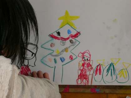 そら組は絵を描きました。「あのな,夢のようなクリスマスを描くの」ということです。
