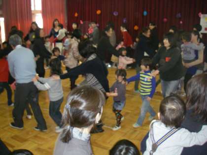 親子お別れ会をしました。「年長組さんは修了します。おめでとうございます」と年少組年中組の役員さんを中心にしてみんなで楽しいゲームや出し物を。そして年長組さんのお母さんも出し物や歌のプレゼントをしてくれました。