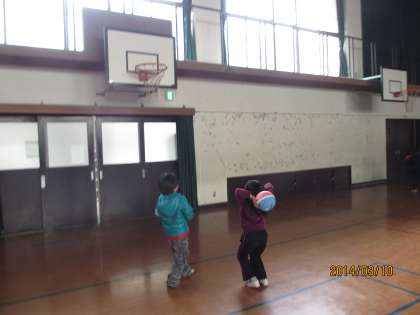 今日は、雪がチラチラと舞う寒い一日でした。こどもたちは、その寒さにも負けず朝から元気いっぱいマラソンをしました。年長児は、自分のボールをもち隣接する翔鸞小学校へ出かけてきました。今日は、体育館をかして頂き、バスケットゴールにむかってシュートを楽しんでいました。幼稚園ではできない体験をさせていただけるので、こどもたちはとても喜んでいました。