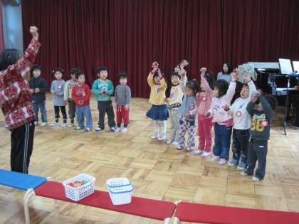 ひかり組は音楽演奏に挑戦です。自分のやってみたい打楽器をたたきリズムを意識して音楽へつくっていきます。