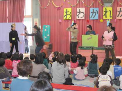 お母さんの有志のみなさんが,劇を見せてくれました。
