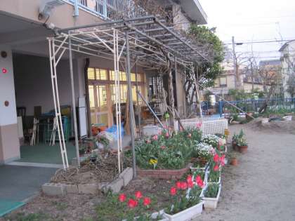 花壇の場所にあるキウイの棚をがっしりした金属パイプで改修してもらいました。まだ前の白いパイプが残っていたり,斜めの支えが入っていて足場が悪かったりですが,土台が固まり次第撤去してすっきりしてもらいます。しばらくのご辛抱とご注意をお願いいたします。