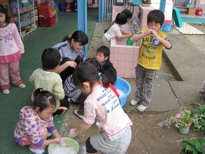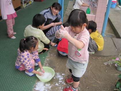 「もっとまぜよう」「水をもっと入れようか」「少しだけ,もうこれでいい」