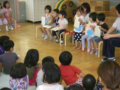 6月のお誕生会をしました。6人のお友だちと1人の職員さんも合わせて,7人が6月お誕生日月でした。