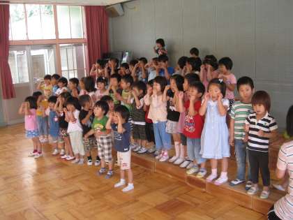 みんなで歌を歌いました。今度の日曜参観に聞いてもらおうね。そら組さんが歌詞をよく覚えていたのでびっくりしました。ひかり組,にじ組さんは,みんなで一緒に歌う楽しさをよく感じているので,これまたびっくりです。