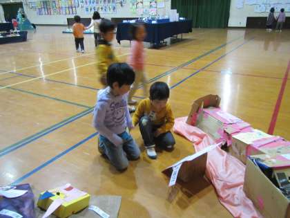 年長のそら組は,年少のひかり組と手をつなぎ,一緒に見ました。