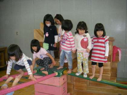 ちょっぴりスリルもある大きなアスレチックができました。子どもたちの想像力って面白いですね。