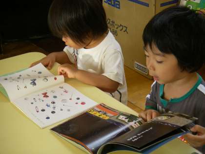 自由に部屋で遊んでいます。女の子2人がおどり出しました。