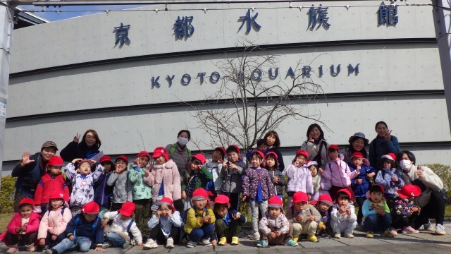 今日は京都水族館に園外保育に行きました。そら組の子どもたちと一緒にでかける最後のお別れ遠足でした。