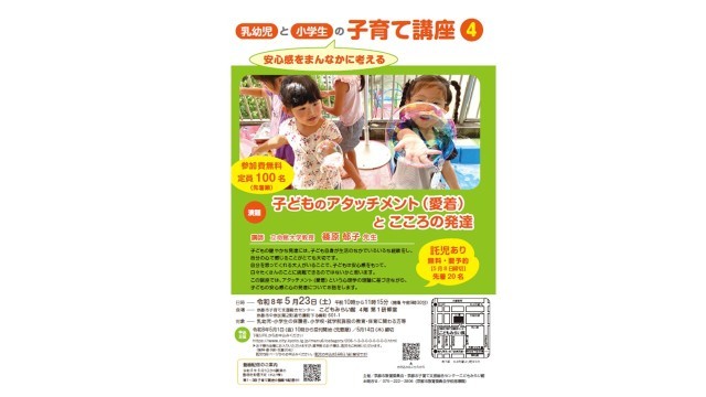 5月23日(土)こどもみらい館にて、「乳幼児と小学生の子育て講座4」が開催されます。