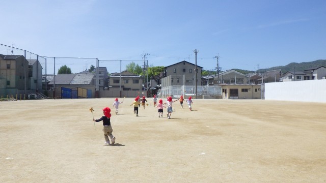 火曜日には、つくった風車を持って翔鸞小学校の校庭に出かけました。広い場所で思いきり走る楽しさと風に吹かれてめいっぱい回る風車の面白さを感じながら、楽しいひと時を過ごしました。また、お天気になったら、回しに行きたいね♪