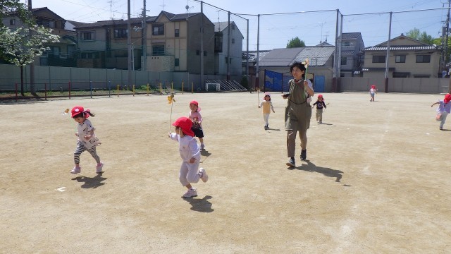 「お外で風車回したいなあ」とつぶやく子どもたちでした。