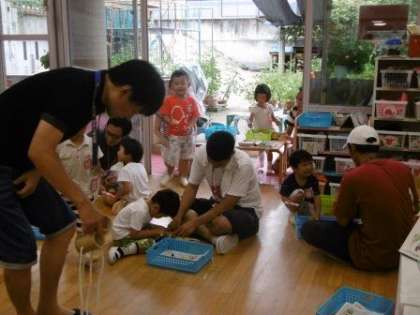 いっぱい触れ合って遊んだ後には,一緒につくって遊びました。
