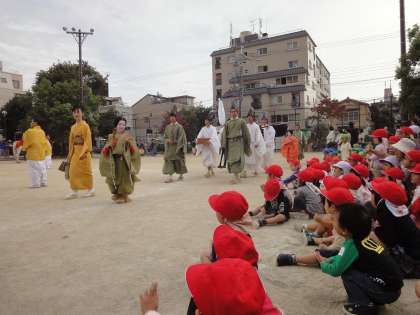 その後,公園を一周し巡行に行かれる行列を,みんなで
