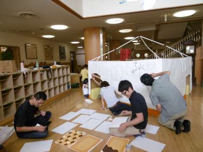 夏のつどい係のお母さんたちは毎週のように集まっていろいろ準備をしてくださっています。今年のテーマは「おかしな?!おかし?!ランドへようこそ」となっています。