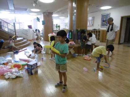 もえぎ幼稚園おやじの会「もえぎパドリ」も夏のつどいの1ブースをいつも担当してくださいます。今年はテーマが「おかし」ということで,いろいろアイデアを練って練って練って・・・。「おかしのおうち」をつくっていただくことになりました。