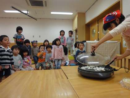匂いにつられて「何してるの」と見にくる年中さんや年長さんもいました。