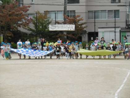 広い竹間公園で動くことに慣れたので,遊戯室で動きにくそうにしていましたが,どの学年も明日に向けての気持ちを一つにしていました。