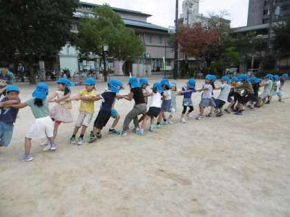 今日は,すみれ組が合図とともに力や気持ちを合わせて引っ張ることができました。1回戦は見事すみれ組が勝ちました。2回戦は今度はゆり組が頑張りゆり組が勝ちました。