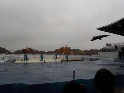 最後はいよいよイルカショーです。ペアの友達と一緒に座って,イルカの声を聞いたりジャンプを見たり,様々なことをしてくれるイルカさんたちのことを,真剣な表情で目を輝かせて見ていました。