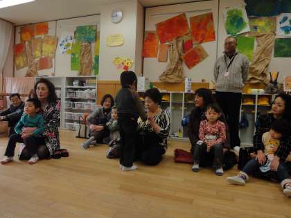 3歳児のあどけない姿やつぶやき一つ一つに,歓声や拍手がおこりました。