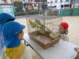今日は一日動物園の日。朝子どもたちが登園してくると,公園や園庭にはもう動物たちが待っていました。ヒツジやヤギ,ウマ,イヌ,ブタ,ウサギ,モルモット,ニワトリ等・・・たくさんの動物たちが幼稚園に遊びに来てくれました。子どもたちは動物たちが喜ぶかかわりを動物園の方から教えてもらい,静かに近寄って行こうとしたり,「かわいいねえ」と優しく声をかけたり,なでたりして楽しみました。ハリネズミやフクロウ,ヘビ等ふだんあまり身近で見ることの少ない動物にも近くで会うことができ,動物の動く様子を見ることができました。首にヘビをまいてもらった子どもたちは「思ったより重たかった」「つめたかった」と感想を知らせてくれました。