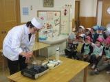 ゲストティーチャーさんは地域のお料理屋さんで,もえぎ幼稚園の保護者でもいらっしゃいます。朝からたくさん準備をしていただき,子どもたちにわかりやすい言葉で「京料理」,「出汁」,「切り干し大根や味噌汁の調理」について教えてくださいました。