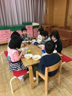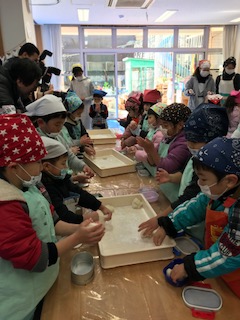 きな粉のおもち,砂糖醤油のおもち,お味噌汁のおもちの3種類のおもちを「あ〜おいしい!」と言ってたくさんお代わりもして食べていた子どもたちでした。良かったですね。
