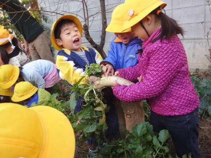 また、ほしファームで育てた大根とサツマイモを子どもたちが収穫しました。