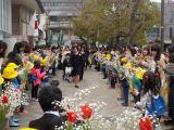 朝から5歳児の子どもたちはお家の方々と一緒に登園してにこにこ笑顔。親子お別れ会でつくったコサージュを胸につけると,とても嬉しそうにしていました。式が始まるとたくさんのお客さんに緊張しながらも,堂々とした様子で修了証書を受け取ったり,おわかれのことばを言ったりしていました。その姿から改めて成長を感じ,とても嬉しく思いました。式が終わる頃にはみんなの願いが叶って雨が止み,在園児の子どもたちと保護者の方々が花道をつくって見送ってくれました。たくさんの方々にお祝いされて,笑顔溢れる子どもたちでした。
