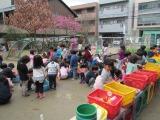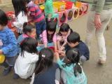 今日は今年度,最後のごみゼロ隊。先月5歳児からごみゼロ隊を引き継いだ4歳児が張り切って,ごみゼロ隊に参加しました。今日のごみゼロ隊は一年間楽しんできた砂場のおもちゃをきれいに洗い,園庭をお掃除するという活動です。今まで一緒に遊んできた3歳児もごみゼロ隊に加わり,みんなでみんなの園庭をきれいにしました。おもちゃもきれいになり,とても気持ちよく今年度の終わりを迎えることができます。次にこのおもちゃを使う時は,大きい組に進級している子どもたちです。