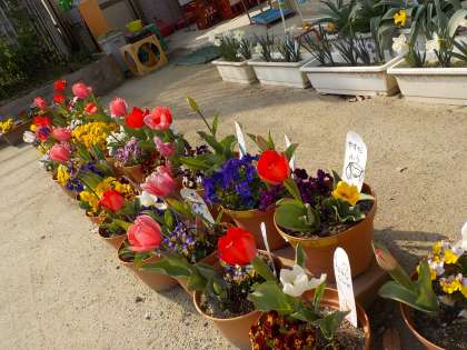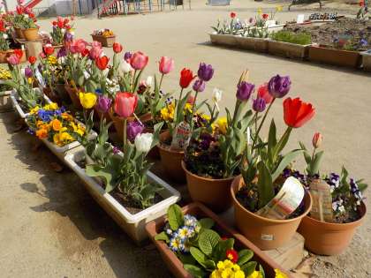 すっかり春を迎えて,みんなのチューリップがとてもきれいに咲き誇っています。