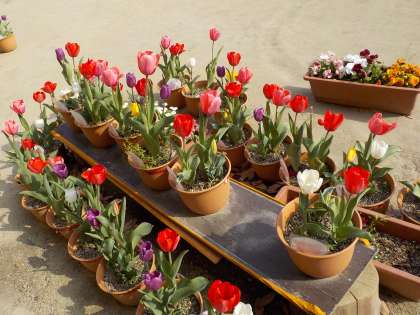 あか・しろ・きいろ・むらさき・ピンクといろんな色のチューリップが見られます。