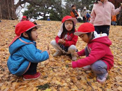 大きな銀杏の木まで行くと,銀杏のじゅうたんができていました。