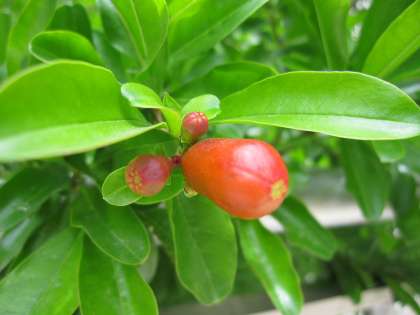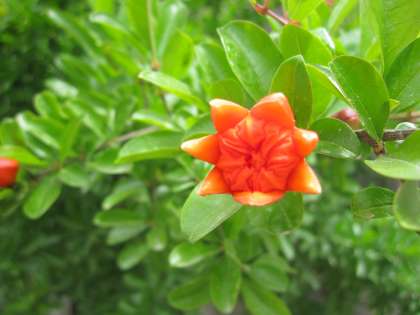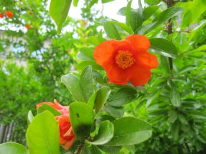 園庭には2本のざくろの木があります。真っ赤な花がさいています。花から食べられる実になるまではまだまだかかりますが、花の変化は今、様々に見られます。