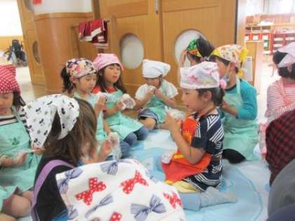 3歳児も豆ごはんを食べて,「おいしい!」「特別な味がする!」と喜んでいました。