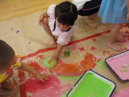 今後も絵の具の手足で感触を感じながら遊ぶ経験を積み重ねていきたいと思います。