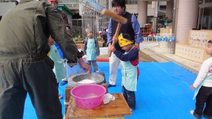 「自分がついたおもちはおいしいね」と、おもちを味わっていました。