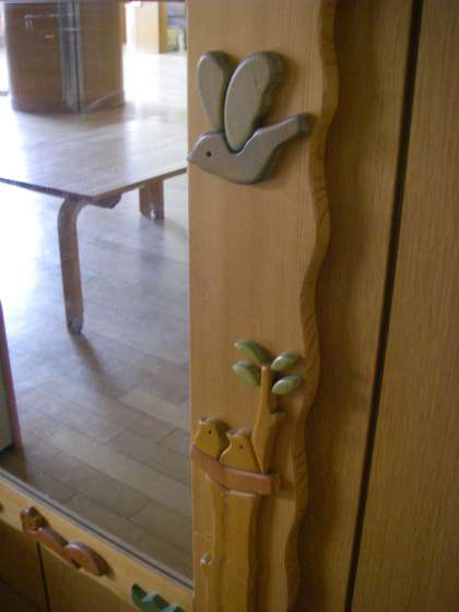 幼稚園にはこんな小鳥も飛んでいます。どこで飛んでいるでしょうか?小さい小鳥だけどさがしてみてね。ヒントは1階です。