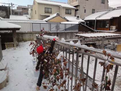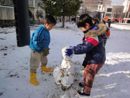 さっそく、積もっている雪を集めたり、雪だるまを作ったりして遊びました。