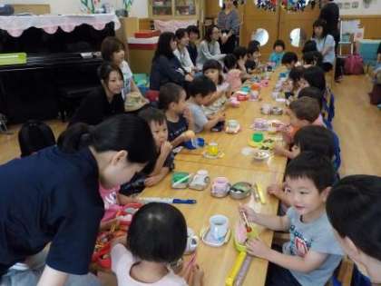 弁当参観では,手作りのおいしいお弁当をおいしくいただく姿を見てもらいました。また,手洗いうがい,お弁当の準備や片づけなども参観いただきました。自分でしようとする姿がたくさん見られたと思います。入園してからの子どもたちの成長を感じてもらえたら嬉しいです。