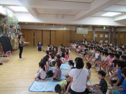 今日は七夕の集いをしました。7月6日に行う予定でしたが,大雨により延期していました。ようやく天気も回復し,今日無事七夕の集いを行うことができました。